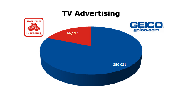 GEICO is a major advertiser in the United States. On Cable last year, they ran 844,251 spots against State Farm's 281,737 ads.
